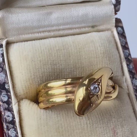 Serpent rings became popular in the Victorian era, after Prince Albert gifted the young Queen Victoria with a serpent ring during their courtship. The snake came to symbolise an enduring love and friendship with its coiled shape representing eternity.