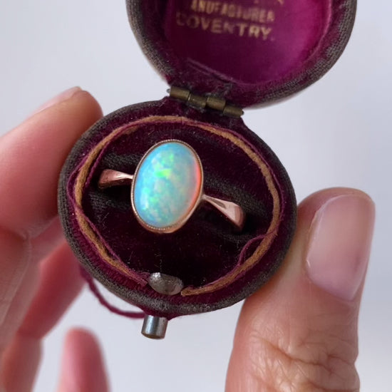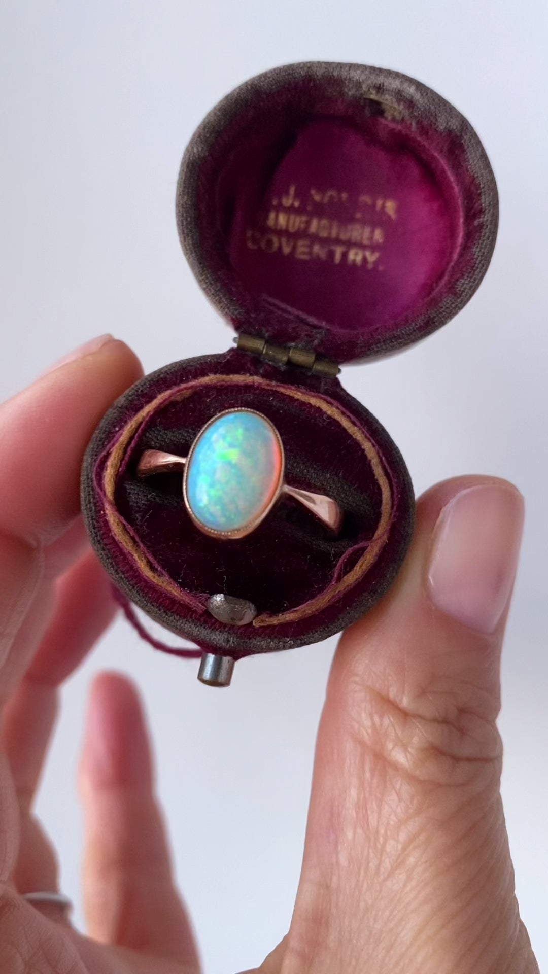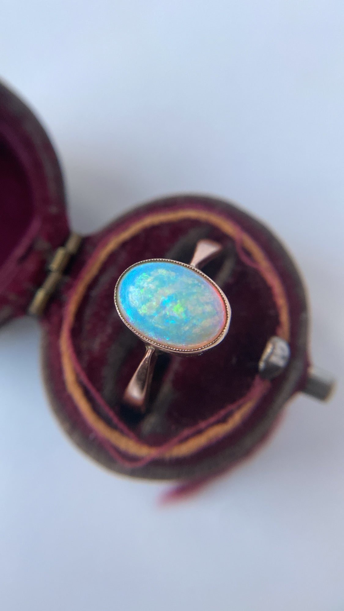 A stunning antique opal solitaire set in 9ct gold and dating from the Edwardian era.