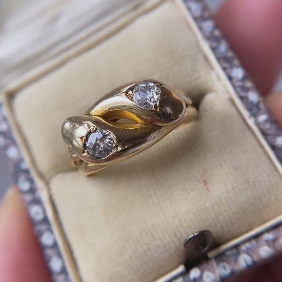 A fabulous double diamond snake ring set in 18ct yellow gold and dating from the Victorian era.
