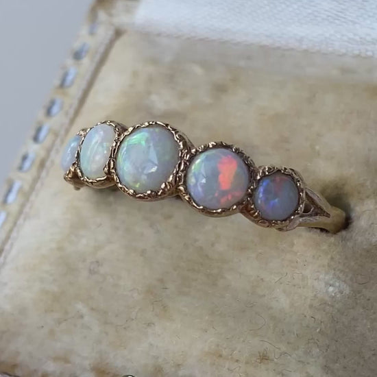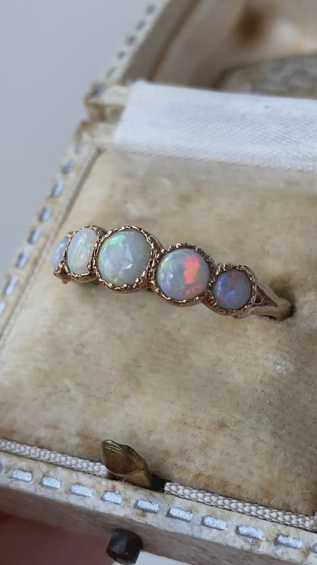 This beautiful opal half hoop is set in 9ct yellow gold and dates from the late Victorian era.