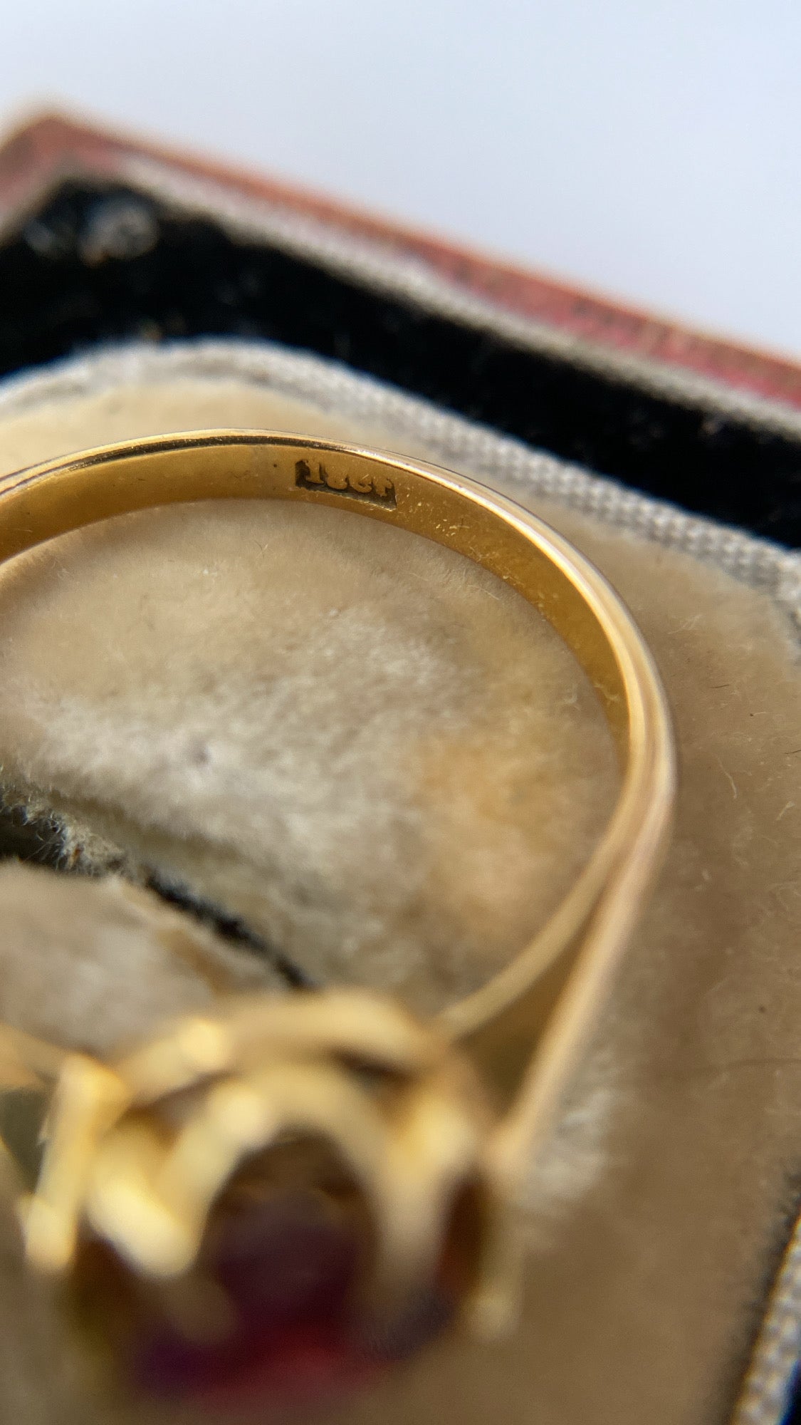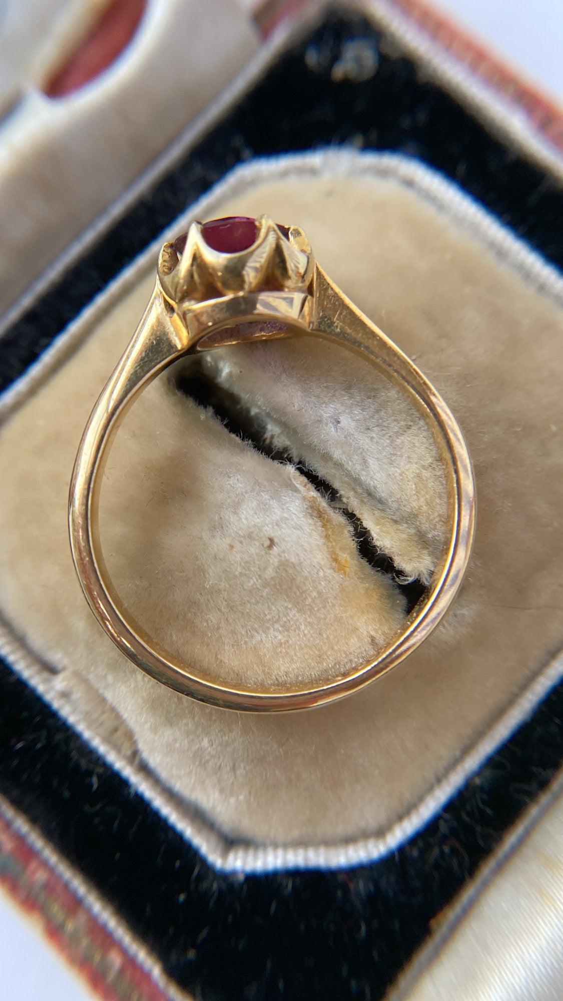 A striking and beautiful garnet ring dating from the Victorian era and crafted in 18ct yellow gold.