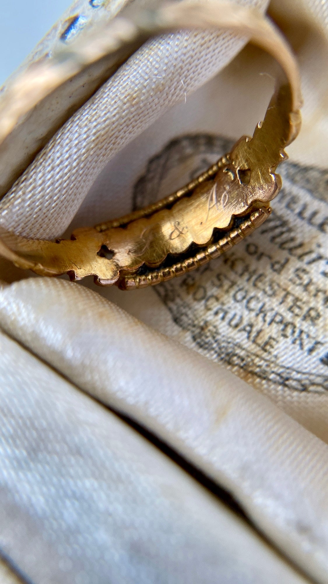 A super special friendship or lovers’ ring, it has the initials “F & A” engraved on the back.